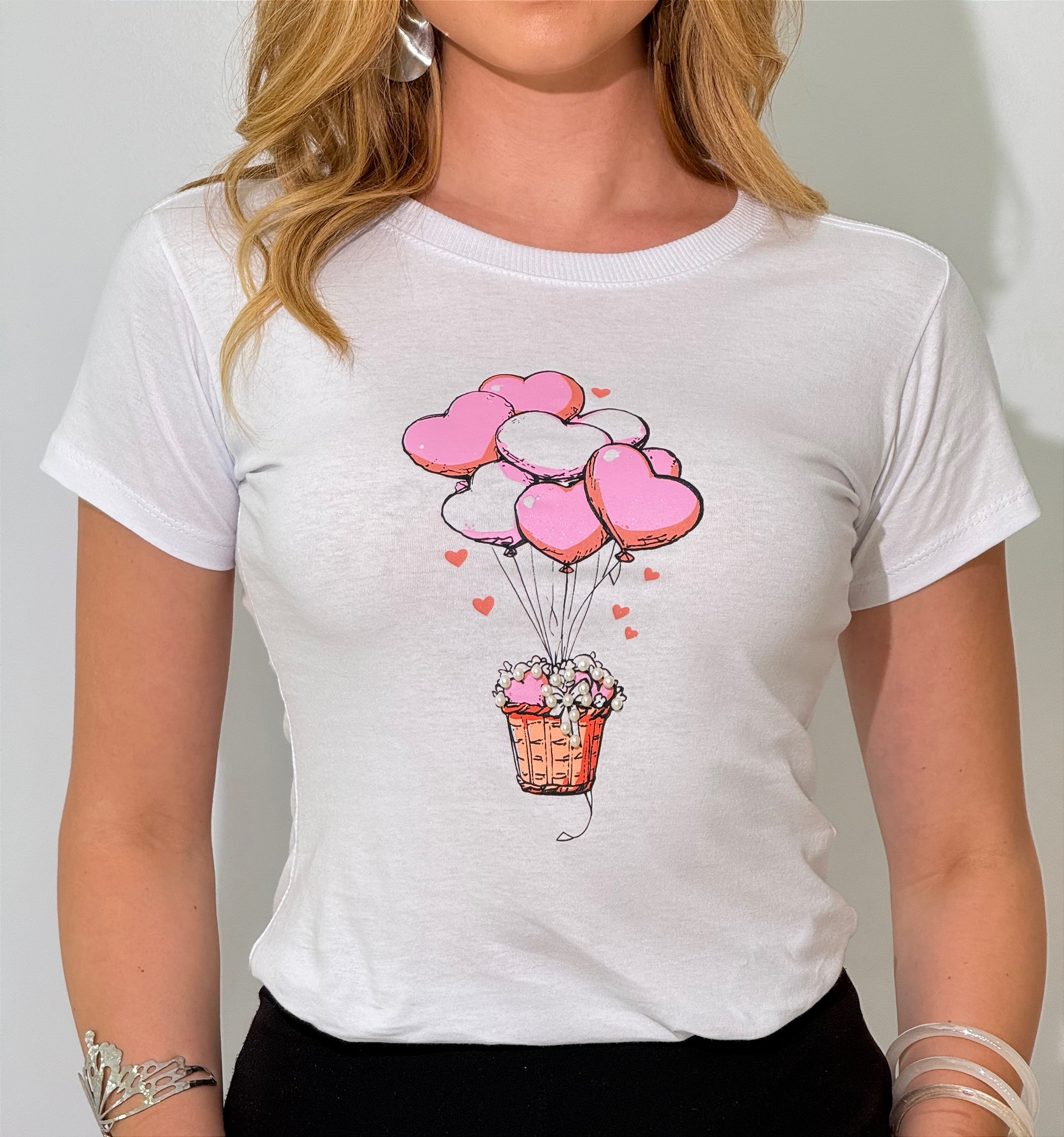 TSHIRT FEMININA ALGODÃO BALÃO PEROLAS / BRANCA