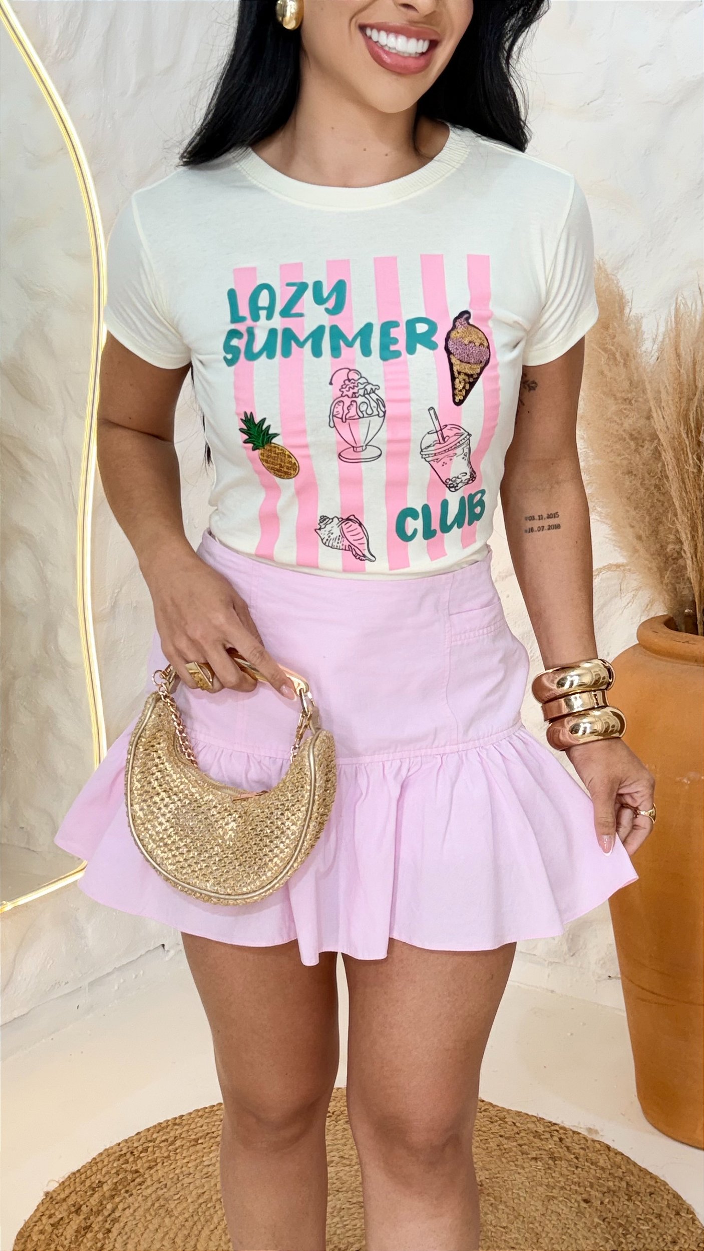 TSHIRT FEMININA ALGODÃO SUMMER APLICAÇÃO ABACAXI / OFFWHITE