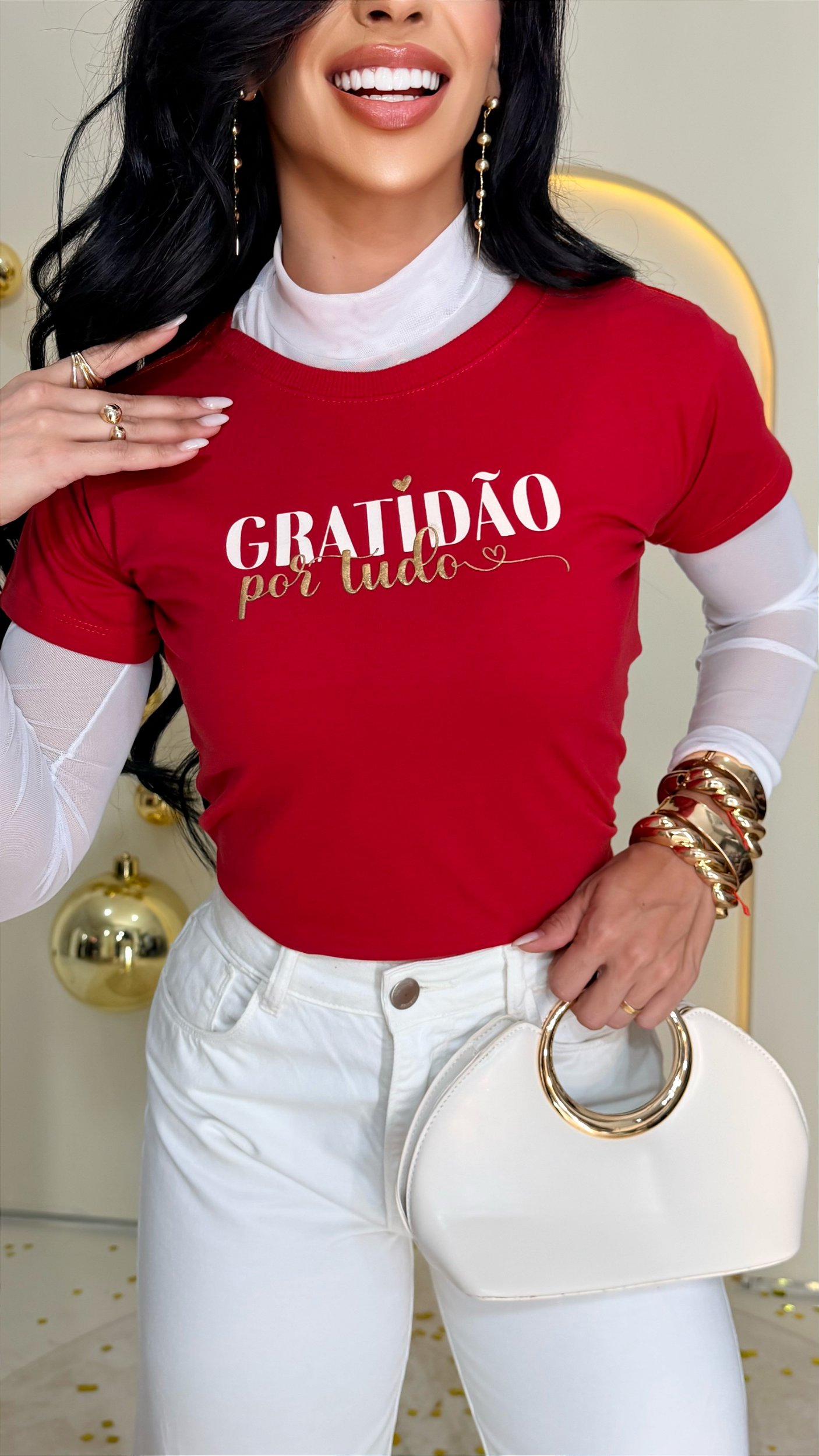 TSHIRT FEMININA ALGODÃO GRATIDÃO POR TUDO / VERMELHA