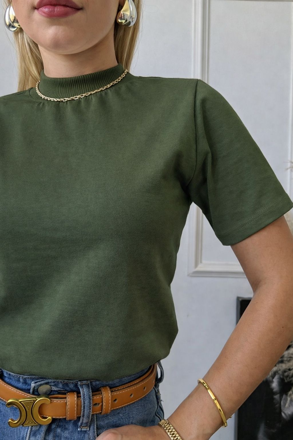 TSHIRT FEMININA ALGODÃO GOLA ALTA VERDE MILITAR
